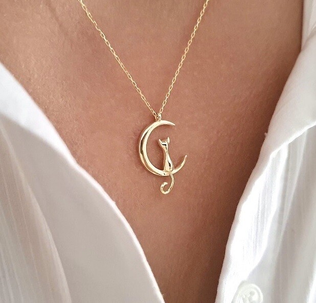 Cat Inside a Moon Necklace